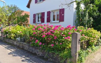 Wenn Sie das Außergewöhnliche lieben: 90m² romantische Landhausatmosphäre mit gehobener Ausstattung für 2-4 Personen, Wohnküche mit Geschirrspüler, 2 Doppelschlafzimmer, 2 Bäder, 2 Balkone, SAT-TV, idyllischer Garten mit altem Baumbestand, Baumschaukel, Trampolin. Ruhige & sonnige Ortsrandlage. Traditionelle Hausbrennerei. Edelbrandverkostungen. English/Francais/Italiano.